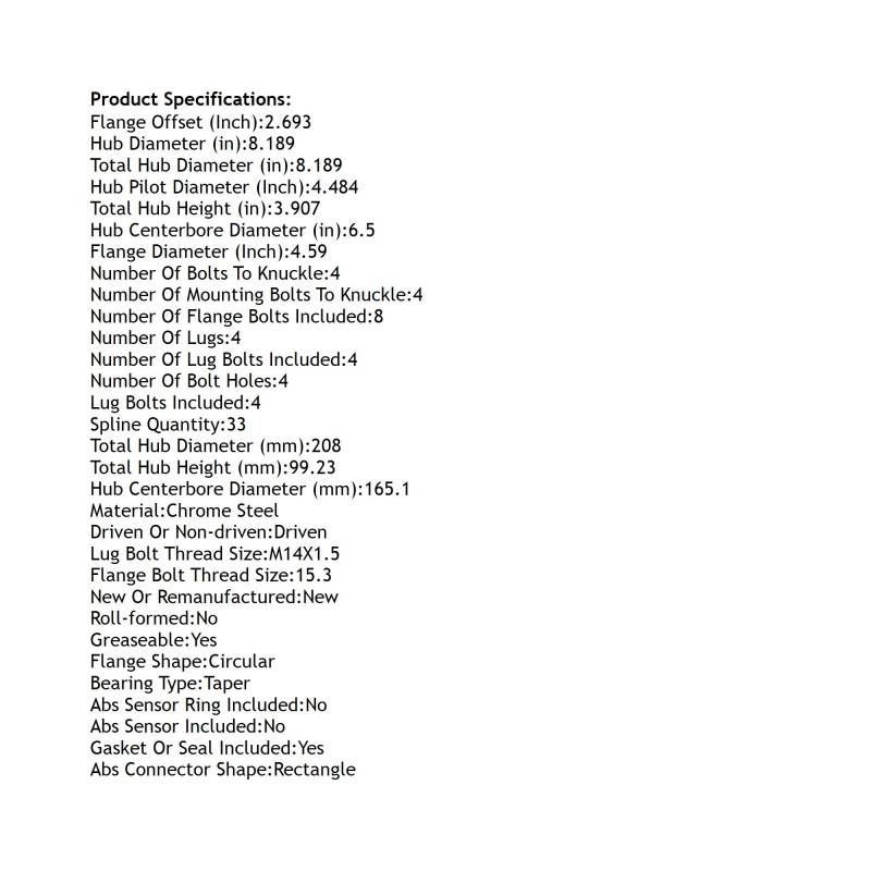 • Type: Hub Assembly