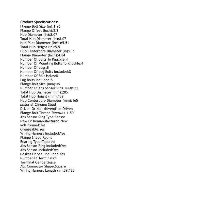 Rear Hub Bearing Assembly Compatible With 2012-2013 Ram 3500 8-Lug Abs 515154 Bolt-On Direct Fit