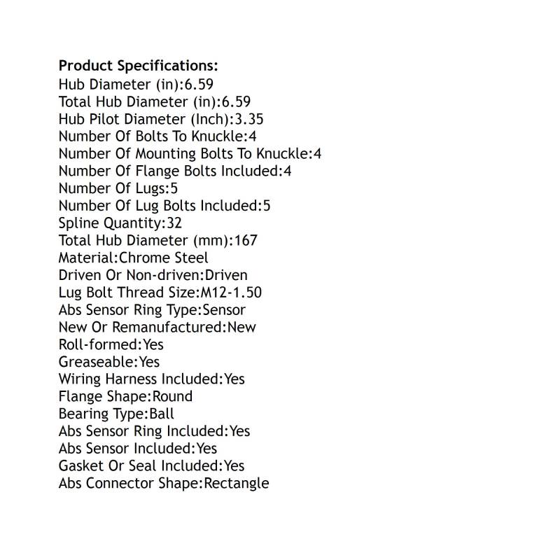• Type: Hub Assembly
