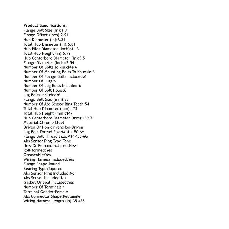 • Type: Hub Assembly