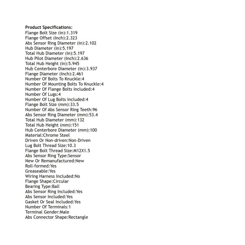 • Type: Hub Assembly
