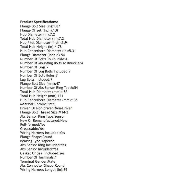 Rear Hub Bearing Assembly Compatible With 2009-2010 Ford F-150 7-Lug Abs 9L3z1104c 515118 Bolt-On