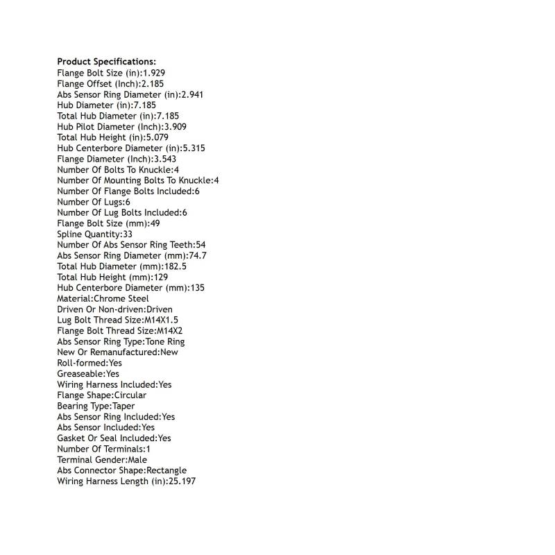 Front Hub Bearing Assembly Compatible With 2018-2023 Ford Expedition Platinum Lincoln Navigator