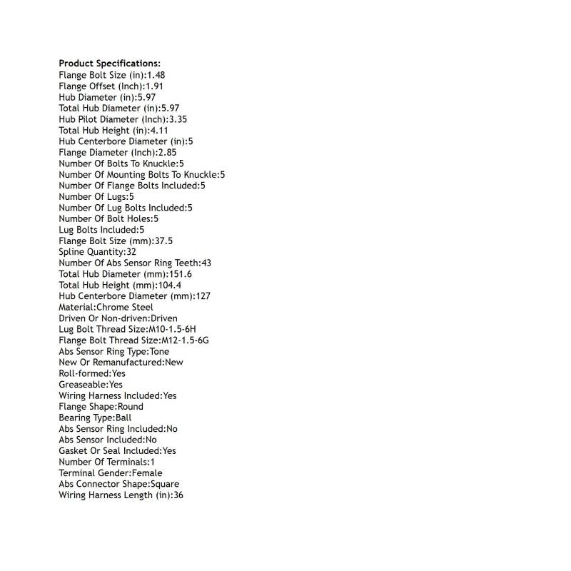 • Type: Hub Assembly