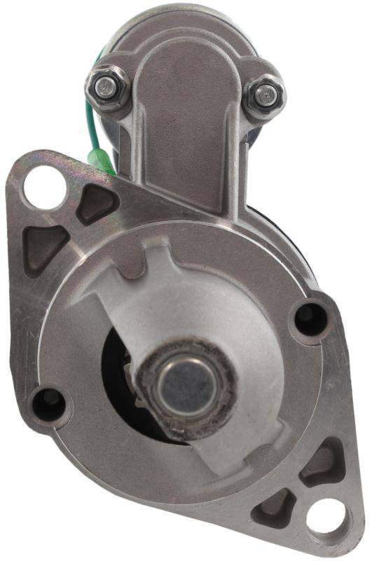 This Bosch-style 12-volt direct drive starter replaces multiple Nippondenso and Toyota part numbers for the Celica, Corona, and Pickup. Features 1.0 kW output, 9-tooth pinion with 29mm OD, M8-1.25 battery stud, dual 11.5mm unthreaded mounting ears, and female insulated switch terminal connector. 74mm registry ensures proper bell housing engagement.