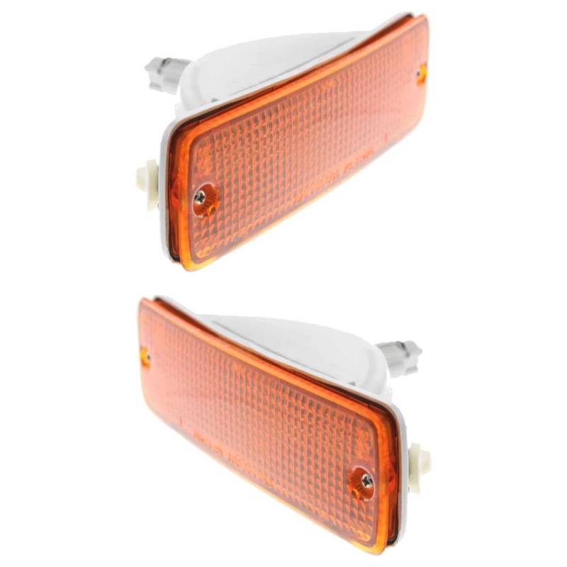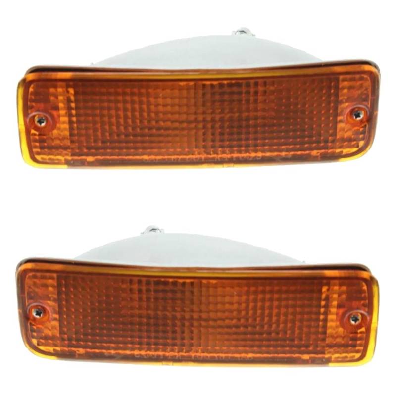 New pair of front turn signal light assemblies. Both sides included. Amber lens, halogen bulb, housing, socket. DOT/SAE compliant. Fits Toyota Pickup 2WD/4WD Base, DLX, SR5 (1989-1995), 4Runner (1990-1991). Replaces Toyota 81510-89134, 81520-89134, Partslink TO2521107, TO2520105.