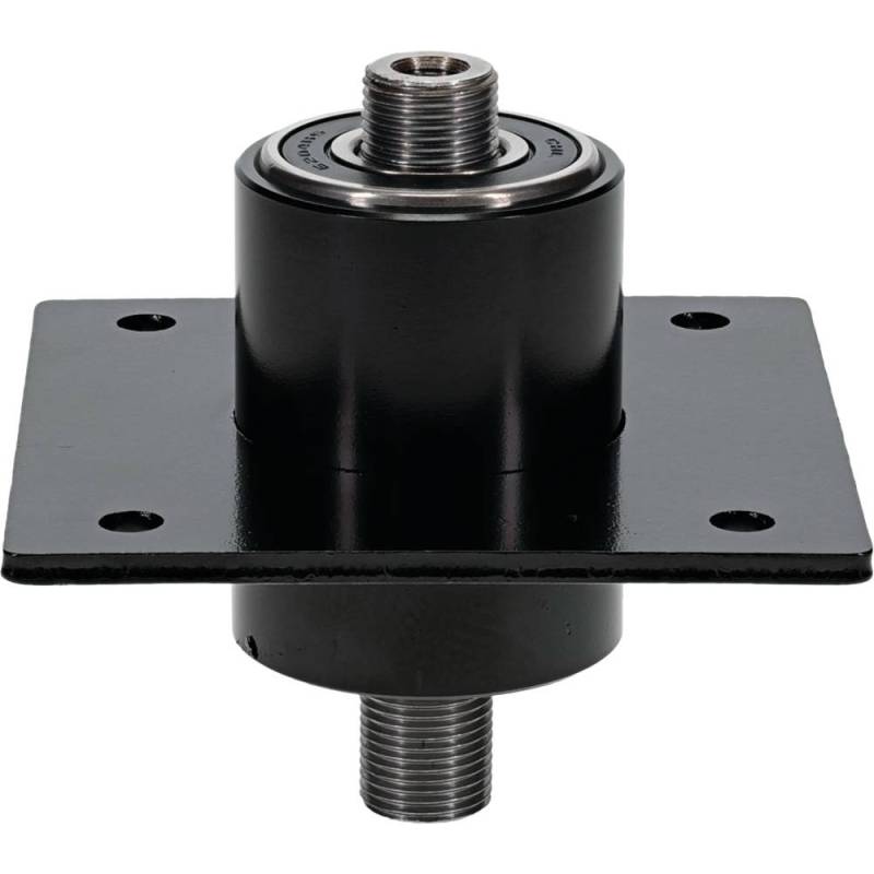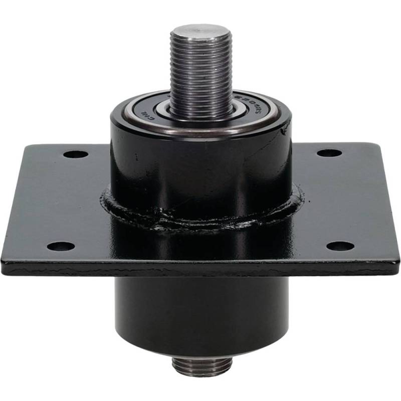 Direct OEM replacement blade driver spindle for Swisher mowers with 60-inch finish cut decks. Features a 4.25-inch outer shaft with 3/4"-16 thread and 4-bolt mounting. Constructed from heavy-duty metal with corrosion-resistant black coating. Replaces Swisher 9018 in outer blade driver positions on the ZT-2250 zero-turn and all 60" pull-behind trail mower models.