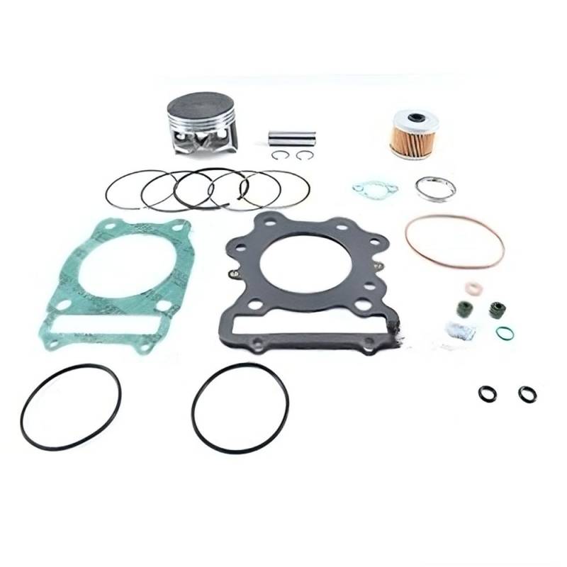 • Kit Includes: Piston, Rings, Wrist Pin, Circlips, Valve Seals, Top End Gasket Set, Oil Filter