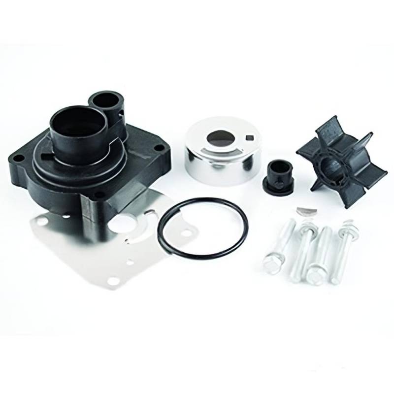 Complete new water pump repair kit with housing for Yamaha 25HP and 30HP outboard engines. Includes impeller, water pump housing, wear plate, insert cup, impeller key, O-ring, water seal, bolts, and washer plates. Direct OEM replacement for Yamaha 61N-W0078-14-00 and housing 61N-44311-00-00. Supersedes earlier Yamaha 61N-W0078-13-00, 61N-W0078-11-00, 61N-W0078-10-00, 61N-W0078-01-00, and 61N-W0078-00-00. Also replaces Sierra 18-3432.