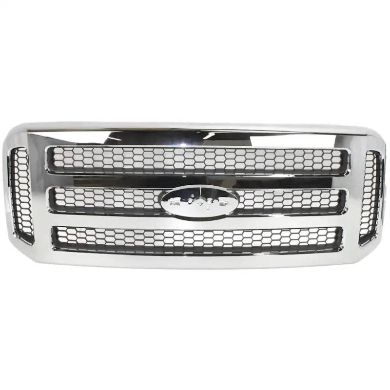 New Chrome Shell Grille Assembly Compatible With Ford F-550 Super Duty Xl 8 Cyl 6.0L F-550 Super