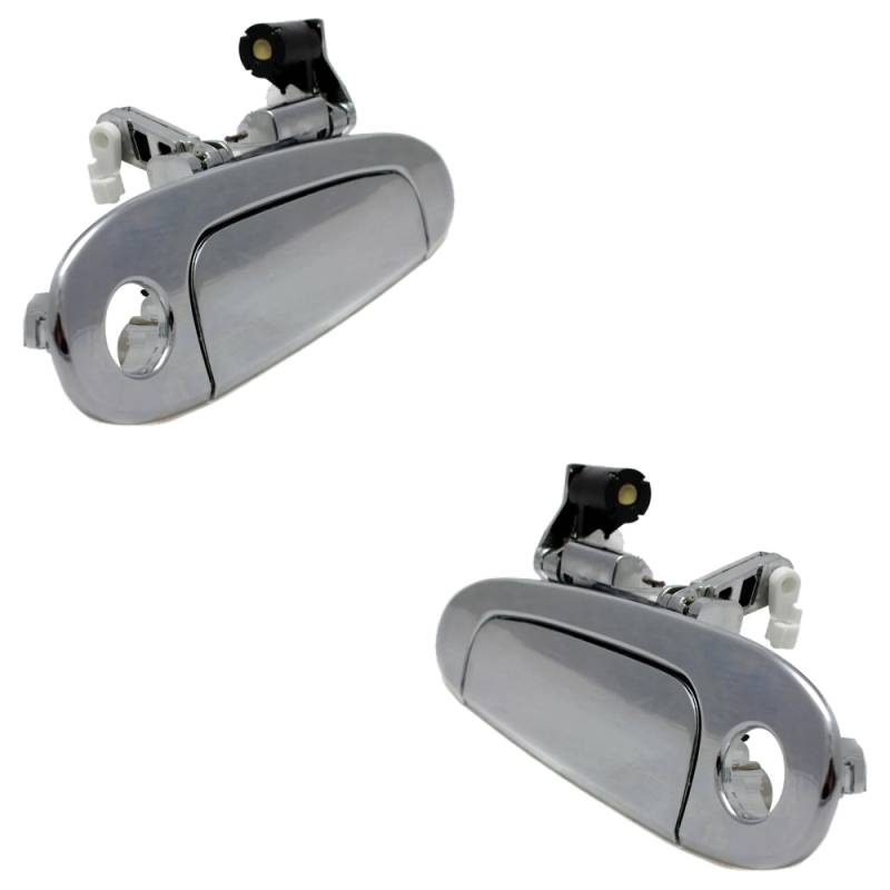 Front Pair Exterior Door Handle Compatible With 2000-2005 Toyota Echo Chrome With Key Hole