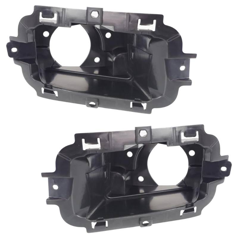 New fog light mounting bracket pair. Textured black plastic, bumper mounted. Replaces GM 22944875 (right), 22944876 (left), Partslink GM2602102, GM2603102. Verify OEM part number from original unit.