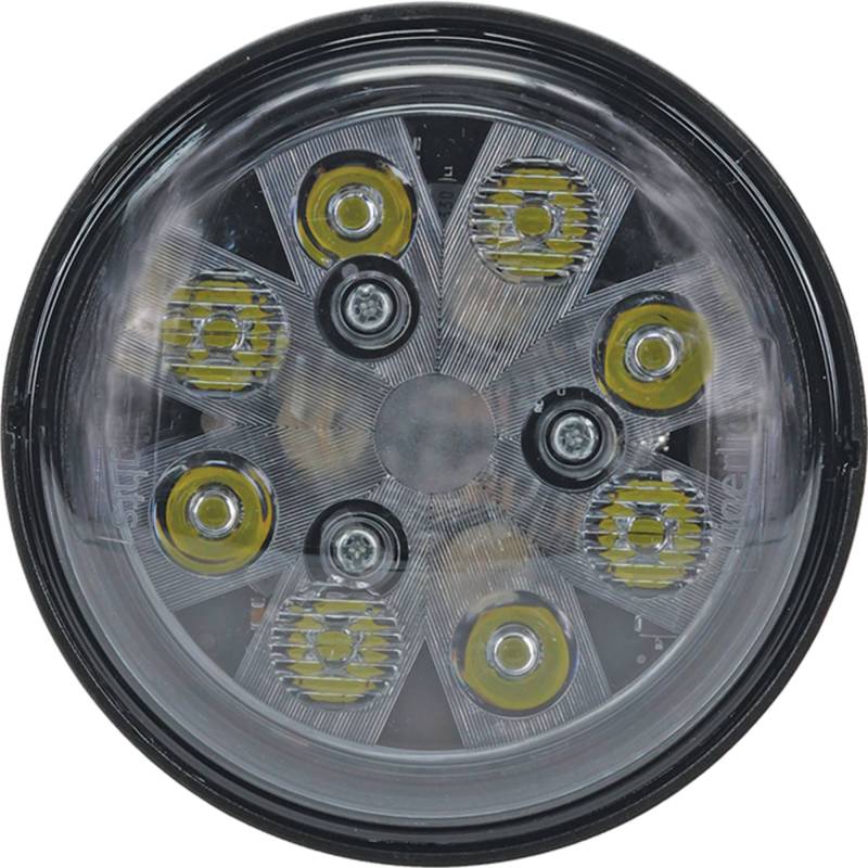 Direct OEM replacement LED sealed round hi/lo beam for John Deere tractors, combines, cotton pickers, and sprayers. 2,200 lumens from 24 watts with dual beam where low beam provides flood and high beam adds spot for extended forward visibility. Screwed connection points provide secure installation using original mount and wiring. Replaces John Deere AR48723, AR85263, AR85264, AR93335, RE10962, RE10963, RE19081, and RE19082. Compatible with 12-24V DC systems drawing just 2 amps. ⚠️ Verify OEM part number from your original unit before ordering to ensure proper fitment.