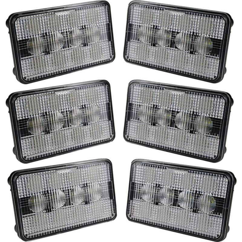 Complete 6-light LED cab light kit for Case IH Axial-Flow combines replacing all above-cab headlights with high-performance LED technology. Kit includes 2 TL6090 center hi/lo beam headlights and 4 TL6080 outer high beam headlights plus mounting hardware for direct OEM replacement. Total output of 21,000 lumens from 360 watts provides dramatic improvement in nighttime harvest visibility. Plug and play installation uses original mount and wiring for quick conversion from halogen to LED. Replaces Case IH OEM part numbers 353657A1, 138225A1, 183162A1, and 87368623. Compatible with 12-24V DC systems. ⚠️ Verify OEM part number from your original unit before ordering to ensure proper fitment.