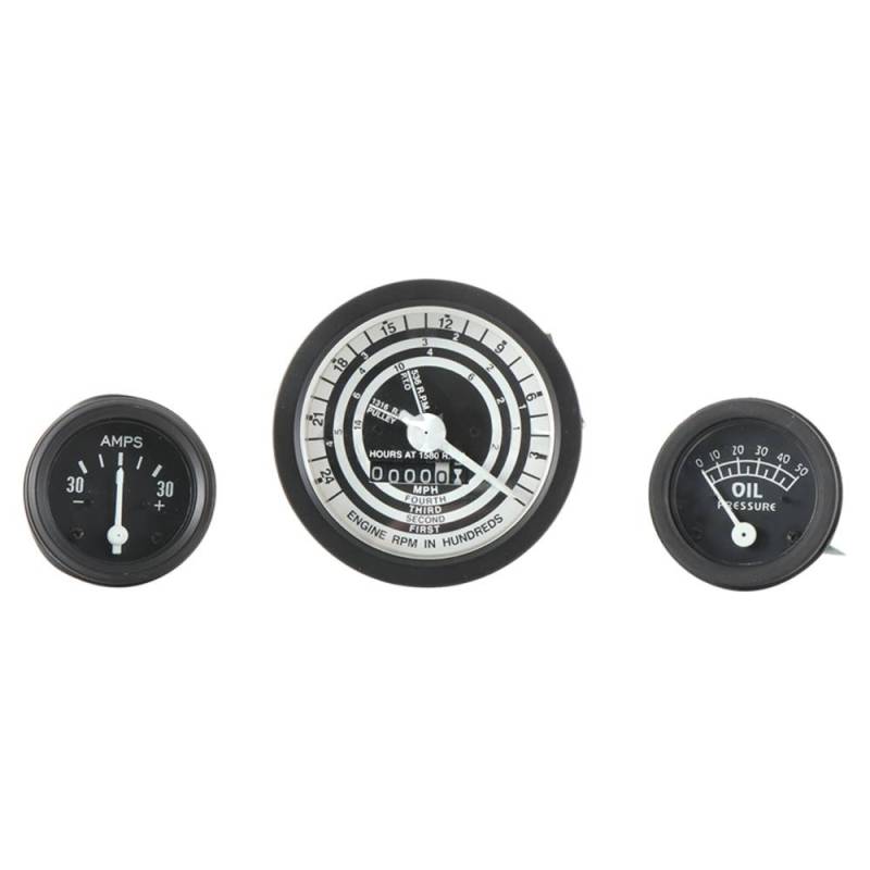New 3-piece gauge kit. Proofmeter, oil pressure, ammeter. Black bezel. Fits Ford 8N, 9N, 2N. Replaces 9N9273A, JAC107917, V6831, 86520180.